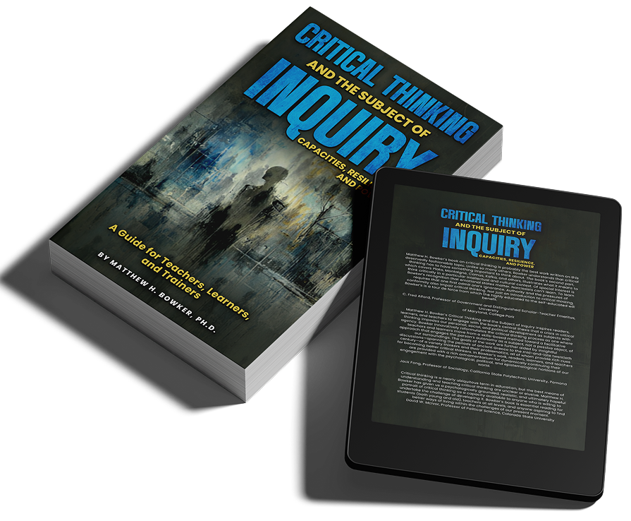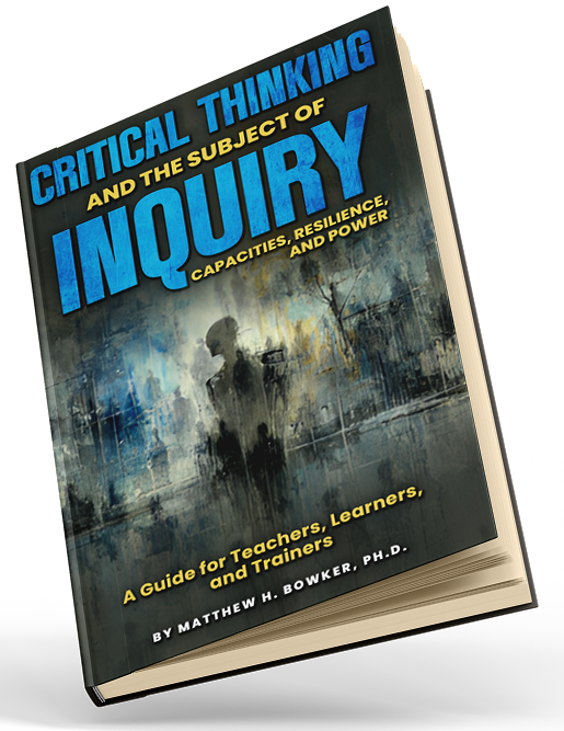 Matthew H. Bowker, Ph.D., is an internationally recognized scholar of psychology, political theory, and critical thought. Educated at Columbia University and the University of Maryland, he has spent twenty-five years in university teaching and research. He is Research Associate Professor of Psychology at the University at Buffalo (SUNY) and Adult Learner Success Coach at SUNY-Niagara. Bowker is the author of more than 20 books and over 40 scholarly articles and chapters. He founded and co-edits Routledge’s Psychoanalytic Political Theory series and serves in key editorial roles, including Editor (North America) of the Journal of Psycho-Social Studies and Associate Editor of Psychoanalysis, Culture & Society. A U.S. State Department Fulbright Specialist in “Twenty-first Century Learning,” he has trained faculty in Singapore and delivered 50+ keynotes worldwide. Recent books include: The Power of Being a Subject, Getting Lost (with Amy Buzby, eds.), The Destroyed World and the Guilty Self (with David P. Levine), and Oblation. Bowker has taught critical thinking for over two decades at Medaille University and the University at Buffalo (SUNY), and has engaged the relationship between critical thinking and subjectivity in a number of recent publications and talks.